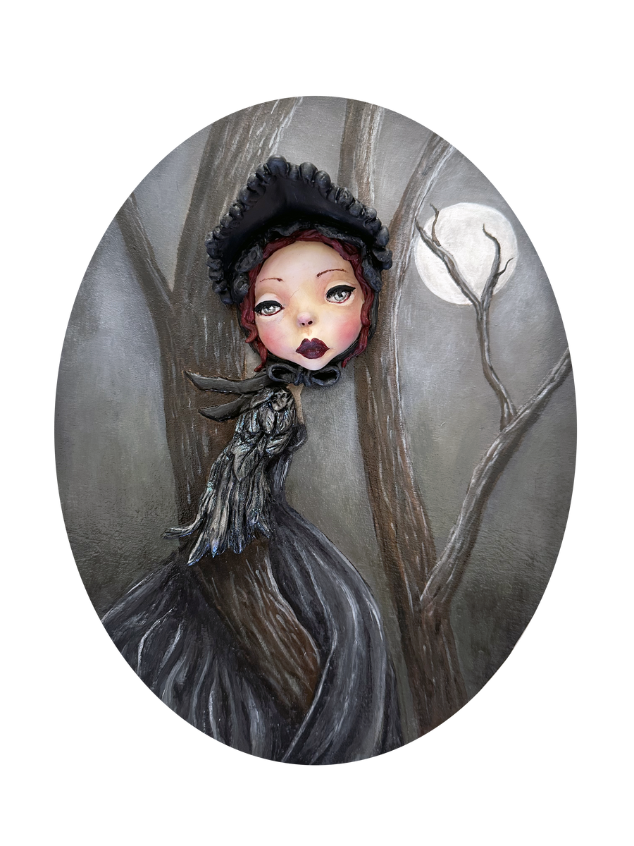 Step into a world where charm and shadows entwine-where mischievous witches, ghostly ladies and eerie elegance linger in every brushstroke. Each painting and sculpture invites you to wander the velvet corridors of a haunted Victorian dream. Stay a while...the magic loves company.