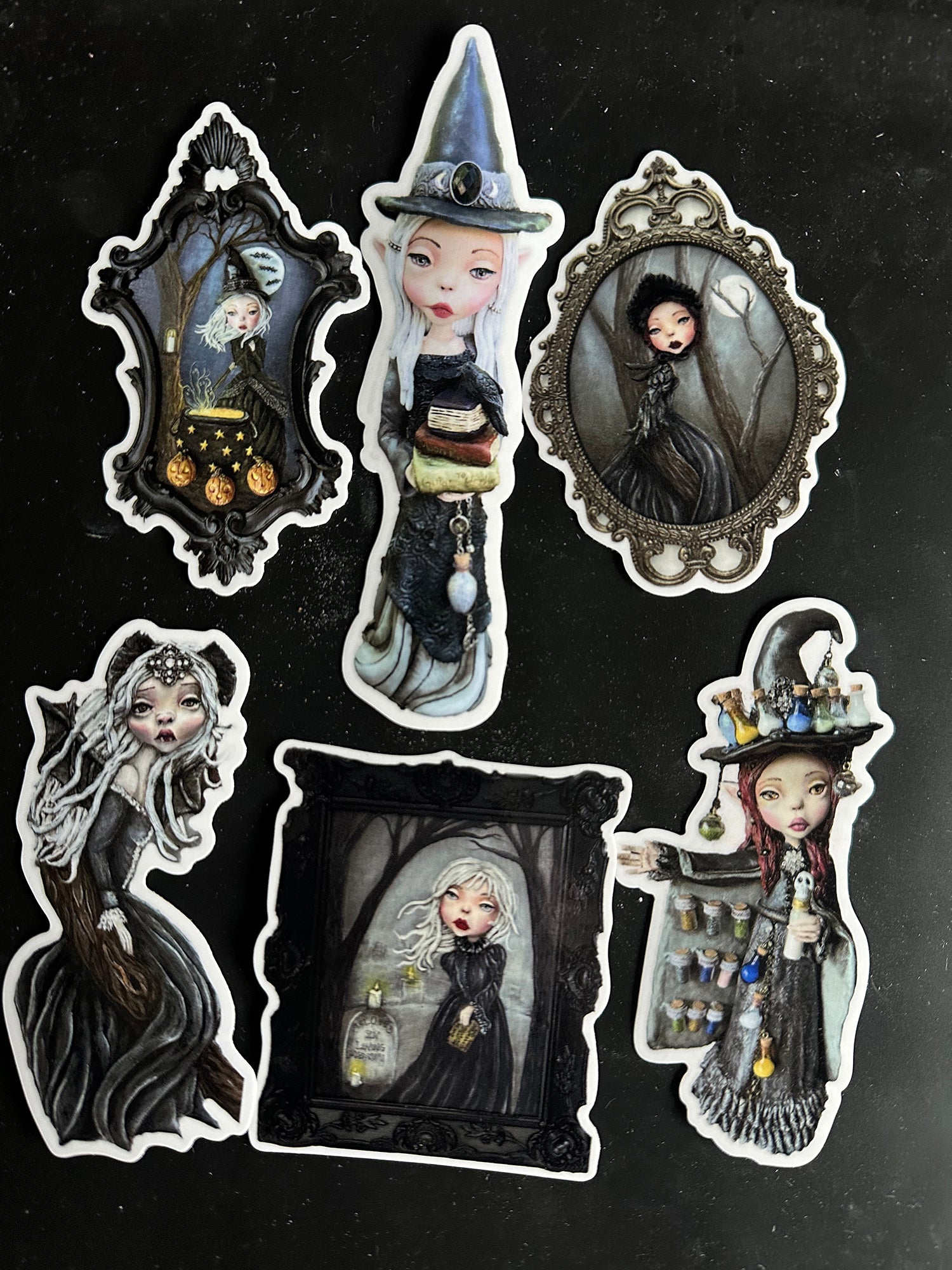 Show off your spooky gothic style with this set of 6 3" vinyl stickers! Waterproof vinyl makes them perfect for drink ware, laptops, phone cases, anywhere you want to add your personal style to!